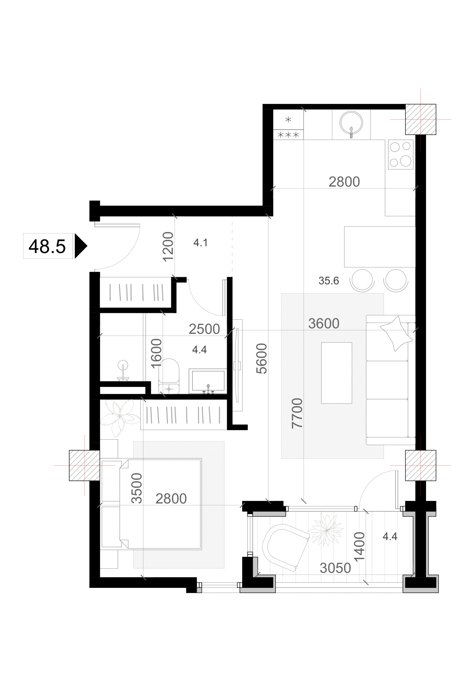 Area 48.5 m²