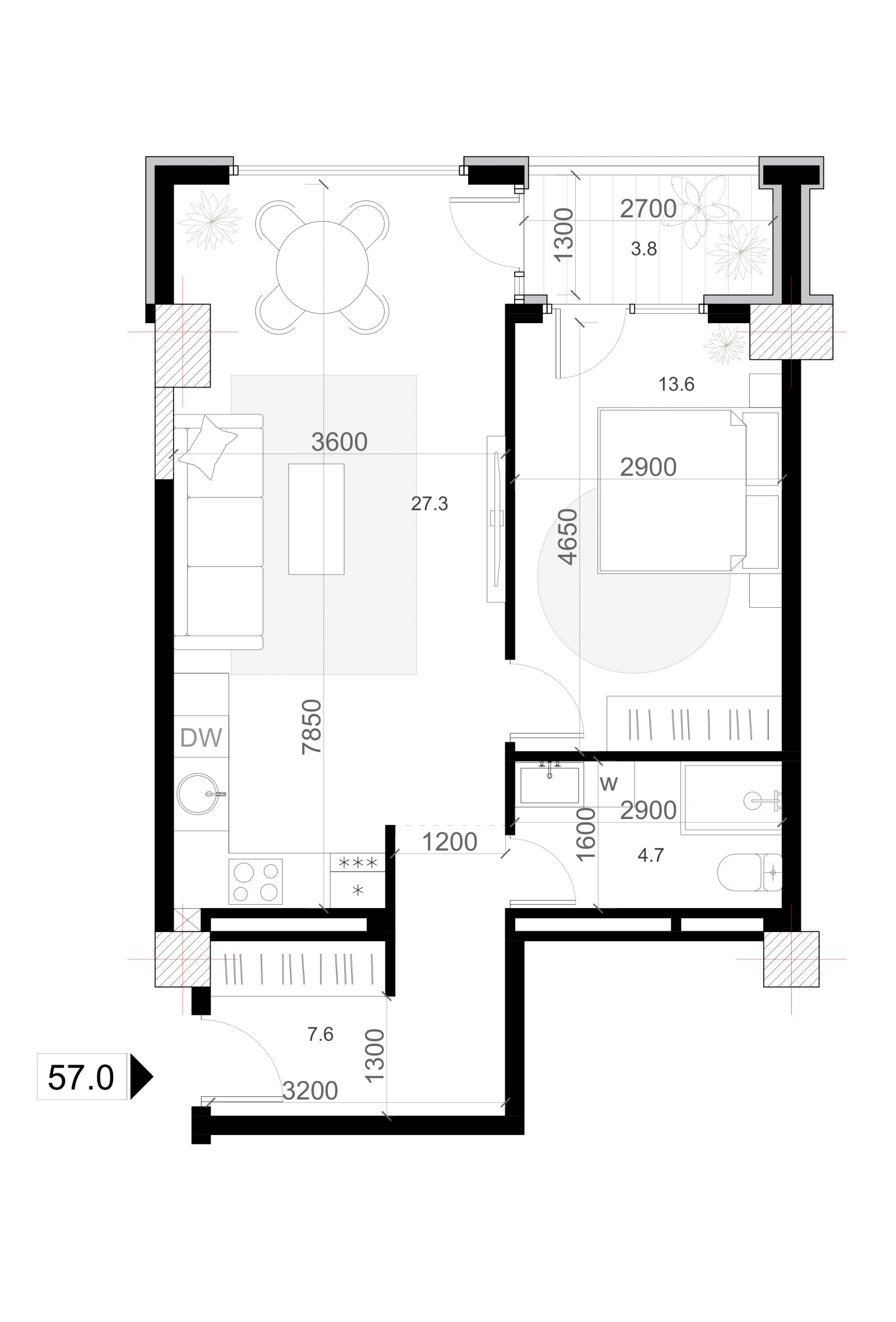 57 m²
