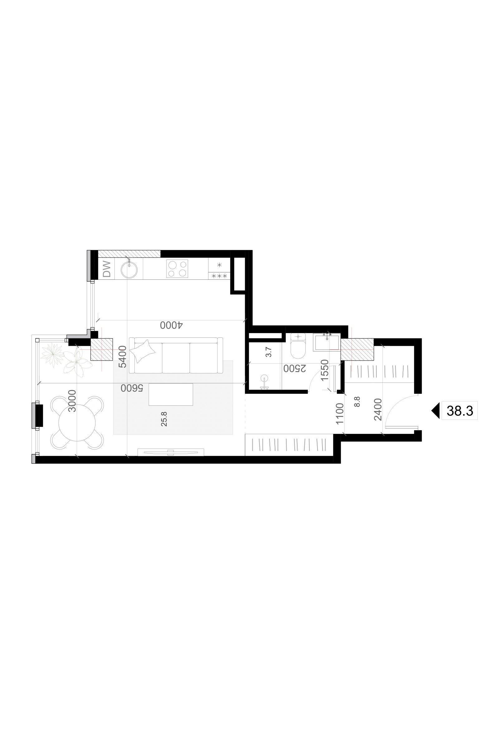 38.3 m²